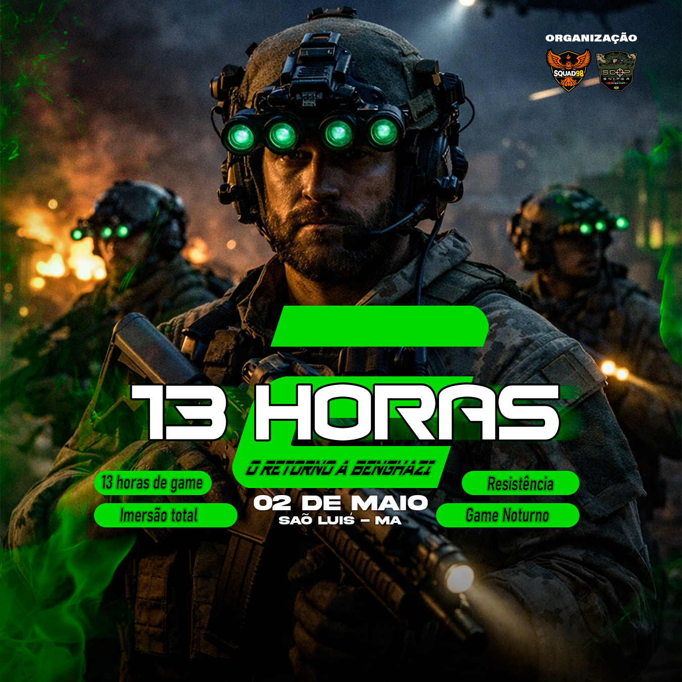 A organização fica por conta da SQUAD98, já conhecida por entregar eventos com proposta mais imersiva e exigente.